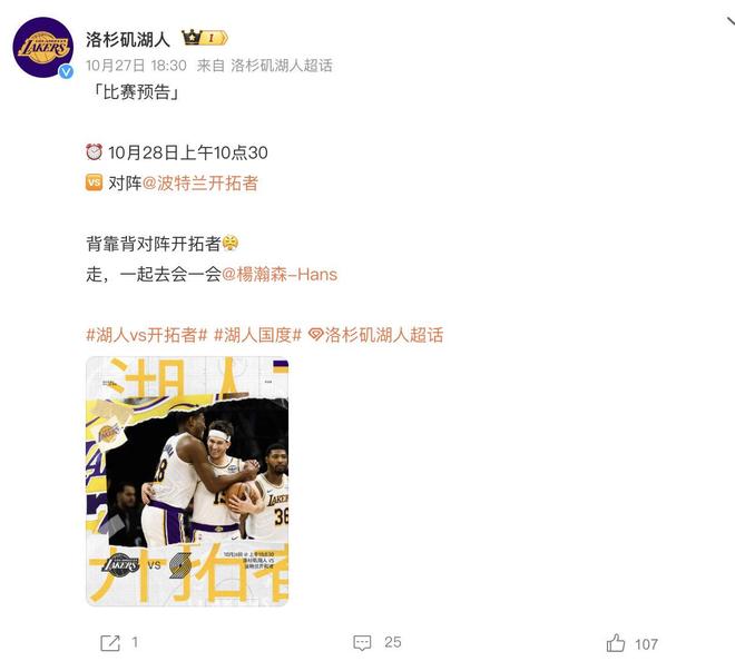 2025年11月04日 东里缺阵 湖人3人20+复仇开拓者迎4连胜!杨瀚森连续2场被DNP